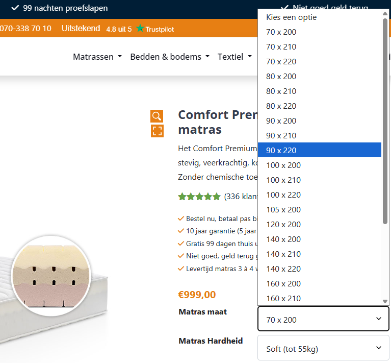 Maatwerk is vaak de beste matras voor 210 cm of 220 cm